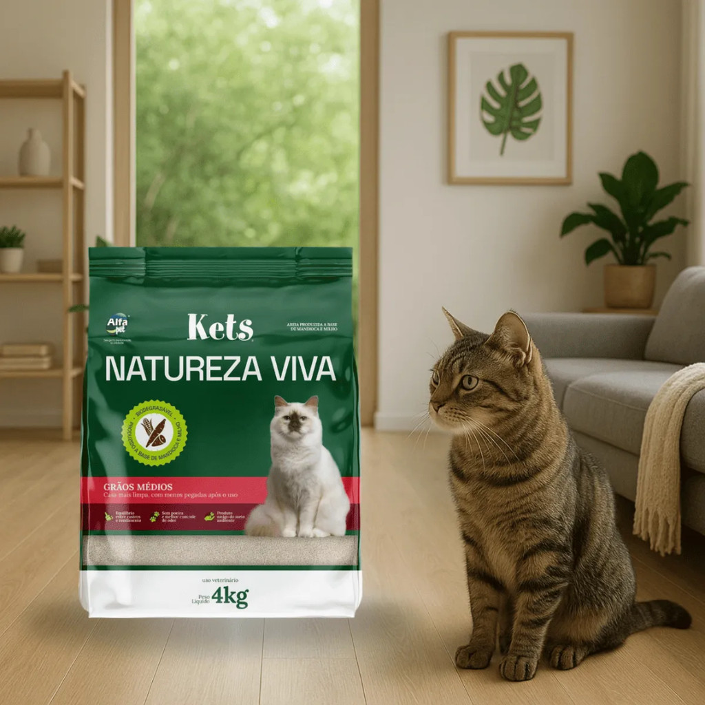 Areia Higiênica Kets Natureza Viva Grãos Médios Para Gatos 4 kg
