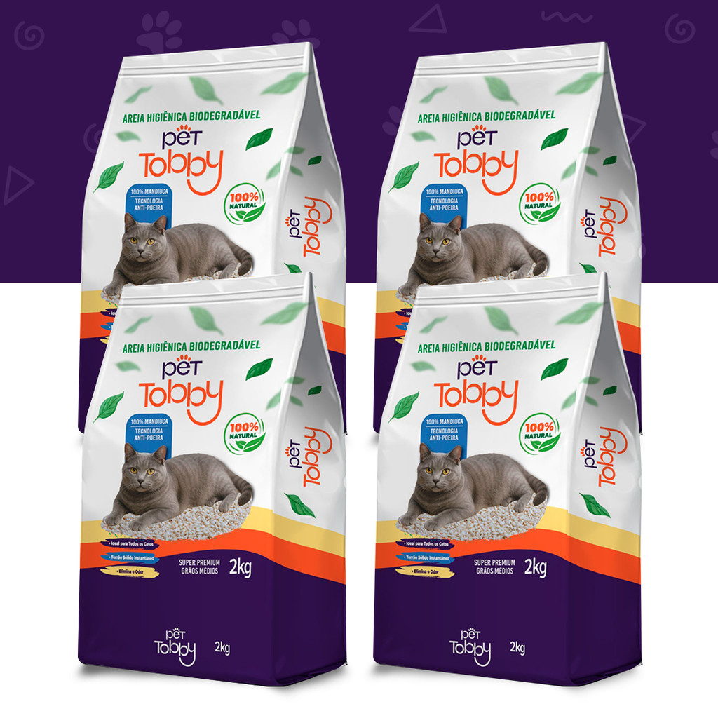 Areia Higiênica Para Gato de Mandioca 8kg e 16kg Pet Tobby Biodegradável Areia de Gato Sustentável