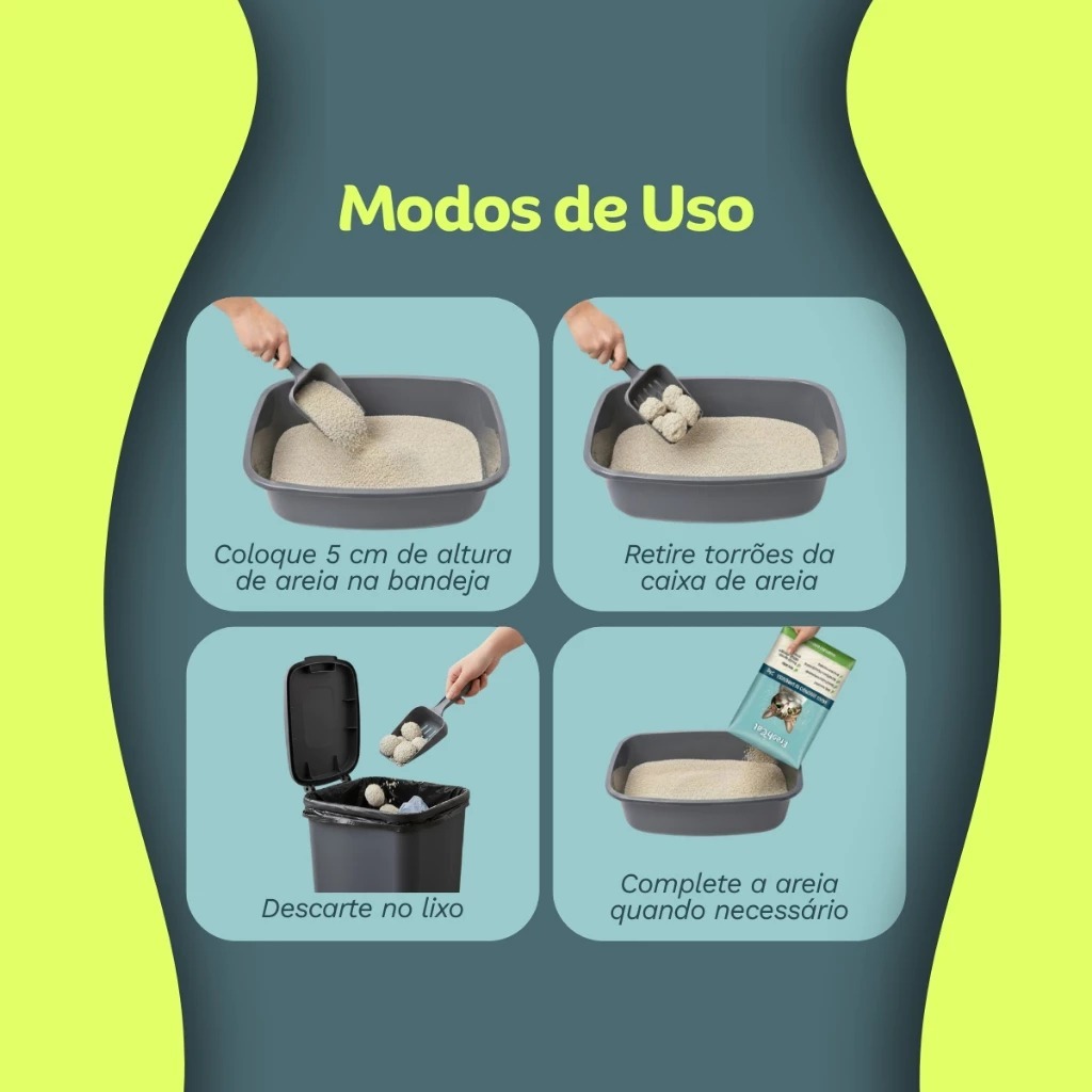 Você procura uma areia higiênica natural, segura e com alto desempenho para o seu gato? Características do produto – Feita 100% de mandioca – Produto vegetal e biodegradável – Sem milho, sem glúten e sem misturas – Aglomeração forte e instantânea – Torrões firmes que não se desfazem na pá – Controle avançado de odores – Grãos macios ideais para patas sensíveis – Sem conservantes, sem fragrâncias e sem aditivos químicos – Torrões que se dissolvem em água – Pode ser descartada no vaso sanitário em pequenas quantidades – Limite de compra: 30 kg por pedido Por que escolher este produto? – Aglomeração eficiente que facilita a limpeza diária – Neutralização de odores por mais tempo – Textura confortável que oferece melhor aceitação pelos gatos – Composição totalmente pura e segura – Alta absorção que mantém o ambiente fresco – Alternativa sustentável e ecológica – Praticidade no descarte, evitando acúmulo de lixo – Ideal para filhotes, gatos adultos e idosos Dicas de uso – Coloque cerca de cinco centímetros de areia na bandeja – Retire torrões e fezes diariamente – Descarte pequenas quantidades no vaso sanitário ou no lixo comum – Complete a bandeja sempre que necessário – Para adaptação, misture um pouco da areia anterior nos primeiros dias Perguntas frequentes (FAQs) – É feita exclusivamente de mandioca? Sim, composta apenas por mandioca selecionada. – Possui mistura com milho? Não, é totalmente pura, sem misturas. – Contém aditivos químicos? Não, é livre de conservantes e fragrâncias artificiais. – Posso descartar no vaso sanitário? Sim, sempre em pequenas quantidades para dissolução adequada. – Controla bem os odores? Sim, graças à alta absorção natural da mandioca. – Os torrões são firmes? Sim, eles não se desfazem durante a retirada. – É segura para filhotes? Sim, é natural, macia e não irrita as patas. Se você busca conforto, eficiência e uma solução sustentável, esta areia é a melhor escolha para o seu gato e para o ambiente.