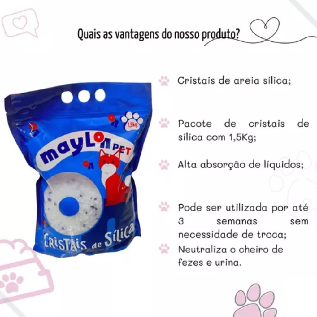 | Areia Sílica Para Gatos Cristal Grosso 1,5kg Maylon Pet Tira Odor este produto | R$ 39,90 | — | 4.6/5 | — |