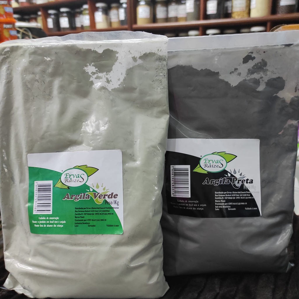 Argila Verde: 100% natural Ervas & Raízes 1kg: A argila verde é um composto mineral natural que pode trazer diversos benefícios para a nossa pele que são oleosas, mistas e com tendência a cravos e espinhas.O grande segredo dos benefícios da argila verde é a sua poderosa combinação de vitaminas e minerais: cálcio, zinco, magnésio, óxido de ferro, potássio, selênio e fósforo são alguns deles. Juntos, estes elementos auxiliam na nutrição da pele, revigorando-a e eliminando toxinas e radicais livres.A argila verde possui pH neutro e tem ação adstringente e tonificante; ajuda a regular o sebo, desobstrui os poros e devolve o equilíbrio da pele – e é aí que as espinhas e cravos começam a ser controlados e cicatrizados Argila Branca: 100% natural Ervas & Raízes 1kg: Ela promete revitalizar a pele, ajudar a clarear manchas, suavizar e cicatrizar, além de ajudar a reduzir inflamações. Ajuda também a renovar a pele, já que faz uma leve esfoliação, remove a oleosidade sem desidratar a pele e absorve toxinas e impurezas.Dentre todas as argilas disponíveis, a branca está entre as mais leves, já que tem pH próximo ao da nossa pele.A argila branca também promove: Esfoliação leve e natural Hidratação; Redução de manchas;Redução de oleosidade. Argila Preta:100% natural Ervas & Raízes 1kg: A argila preta não é encontrada com facilidade, é a mais fina de todas. A argila preta ou também chamada de lama vulcânica, é usada para desintoxicar a pele. Sobretudo as peles oleosas. A argila preta age como um excelente anti inflamatório, anti-artrósica, absorvente, previne o estresse.Os benefícios da argila preta são:Ação antiinflamatória;Anti-artrósica;Absorvente;Anti-stress. Argila Rosa:100% natural Ervas & Raízes 1kg A Argila Rosa é a mistura da argila vermelha com a branca, agregando, portanto, o que há de melhor da argila vermelha com a suavidade da argila branca. E o resultado é uma argila suave que é indicada para o tratamento de peles sensíveis e delicadas. A Argila Rosa é indicada no tratamento de peles delicadas, avermelhadas, sensíveis, irritadiças, que têm tendências alérgicas, que estão desidratadas ou com rosáceas.Por ser rica em óxido de ferro tem um papel fundamental na respiração das células e na transferência dos elétrons e, isso faz com que a nossa pele esteja sempre hidratada e com lasticidade, além de retardar o envelhecimento. Argila Cinza: 100% natural Ervas & Raízes 1kg A argila cinzaé usada em peles oleosas e com manchas. Devido ao titânio presente em sua composição, combate espinhas, cravos e é um excelente esfoliante. A argila cinza é antioxidante natural, retardando o envelhecimento da pele e ajudando também a clarear a pele com manchas e a combater os radicais livres, através dos seus antioxidantes. Argila vermelha : 100% natural Ervas & Raízes 1kg: A argila vermelha é excelente para peles sensíveis. Ela absorve a oleosidade, hidrata, previne linhas de expressão, tem efeito cicatrizante e por ser rica em óxido de ferro, ela ajuda a renovar a estrutura das células, que precisam do ferro para realizar a respiração celular. Argila amarela : 100% natural Ervas & Raízes 1kg: Essa argila rica em silício é muito poderosa para limpar profundamente o couro cabeludo, absorver as toxinas ali encontradas e ainda remover as células mortas. É perfeita para a realização de um detox capilar. Modo de usar: No rosto, aplique a pasta formada da mistura com água, exceto na região dos olhos e deixe agir por 20 minutos antes de removê-la com água. A máscara pode ser feita a cada duas semanas. No entanto, produtos a base de argilas, como sabonetes, podem ser usados diariamente.