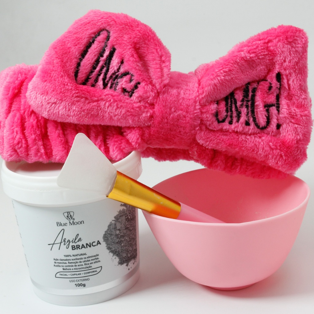 Argila Facial corporal e capilar faixa de cabelo para Maquiagem e Tigela de Silicone com Espátula