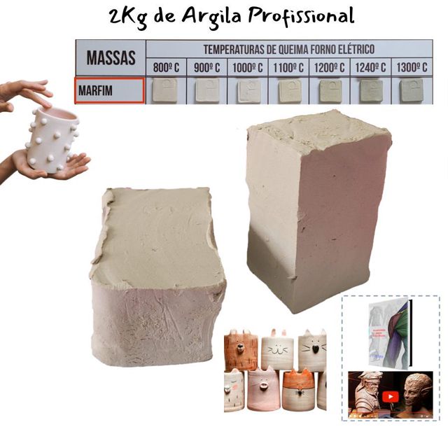 [CONTEÚDO] - 2kg de Argila Profissional na cor MARFIM de alta qualidade, marca PASCOAL. IMPORTANTE: Uma ótima seca acontece com a queima desta argila entre 800 - 1240 C. DESCRIÇÃO EM DETALHE: É indicado para fazer peças de cerâmica, escultura e modelagem, e acabamentos de pintura (esmalte, e outros). Produto profissional e de qualidade Cor: Como mostrado na foto Ficamos a disposição para qualquer dúvida... Boas compras!