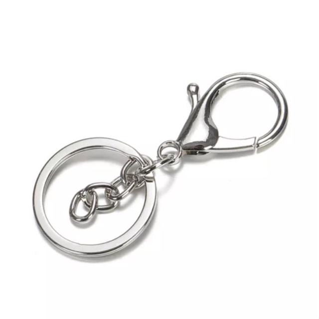 Argola para chaveiro com corrente - prata - 30mm + Fecho Lagosta 35mm 10 peças