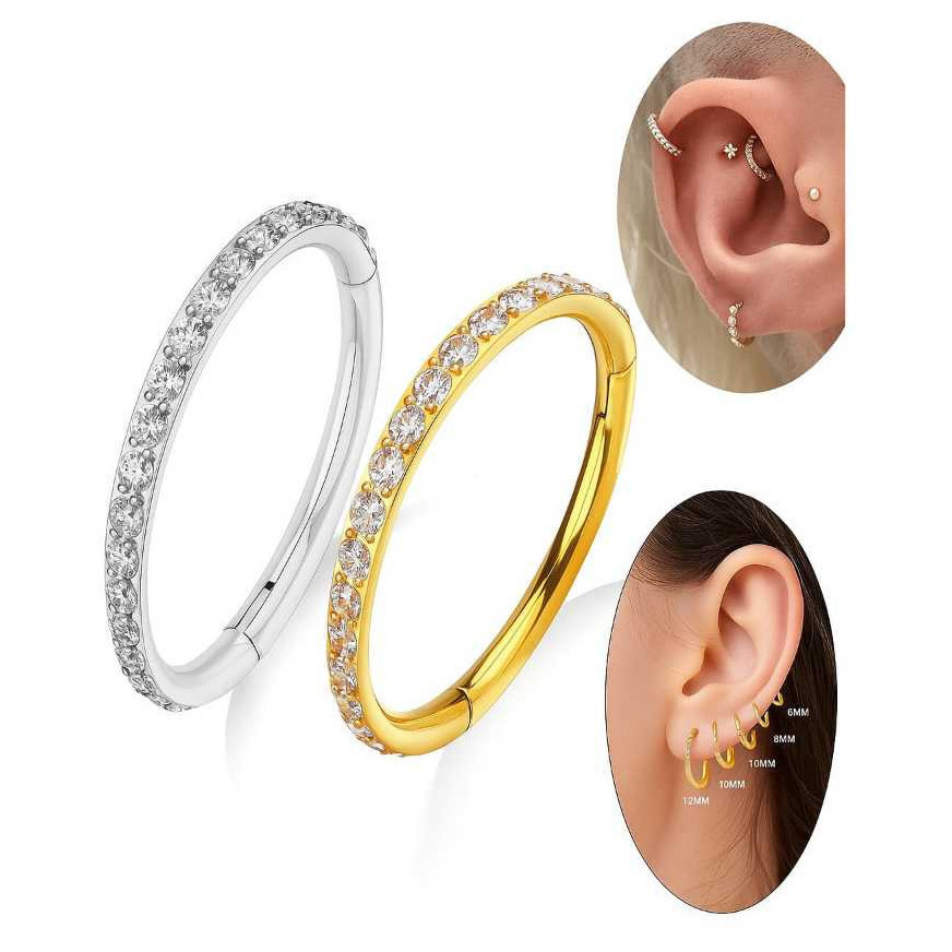 ATENÇÃO NOS PRIMEIROS 30 DIAS DESTE NOVO ÓTIMO ITEM EM NOSSA LOJA COM UM PREÇO DE VANTAGEM DE CUSTO LEVE! ! Piercing de Argola de Titânio Macio com Design de Unha! Realce sua beleza com este piercing de argola de titânio G23 em formato de clique, cravejado com zircônias, disponível nas cores ouro PVD e prata natural em 4 tamanhos. Feito com titânio de grau de implante, este piercing é hipoalergênico, livre de níquel e perfeito para quem busca joias corporais seguras e duráveis com brilho intenso! Benefícios por benefícios: Fecho Shimmer * Fecho Shimmer - fácil de abrir e fechar Incorporado com micro zircônias brilhantes Material de alta resistência - não escurece, não enferruja, não oxida. Pode ser usado na praia, à beira da piscina ou no chuveiro Joias hipoalergênicas e sem níquel - seguras mesmo para peles muito sensíveis, previnem inflamações e alergias. Seguro para o primeiro piercing ou piercing recém-colocado INDICAÇÕES DE USO: Espessura de 1,2 mm (padrão para piercings nas orelhas). Escolha o diâmetro ideal para o seu furo: Ideal para tragus/antitragus/rook/snug/daith Ideal para cartilagem/hélice/snug/daith/septum – Ideal para cartilagem/hélice/rook/snug/daith/septum 10mm – Ideal para cartilagem/hélice/cozimento/plano/septum Ideal para conchas/planas Adicione ao seu carrinho o piercing de argola de titânio com configuração de clique e garanta uma joia premium que é bonita e durável, perfeita para expressar seu estilo com elegância e confiança!