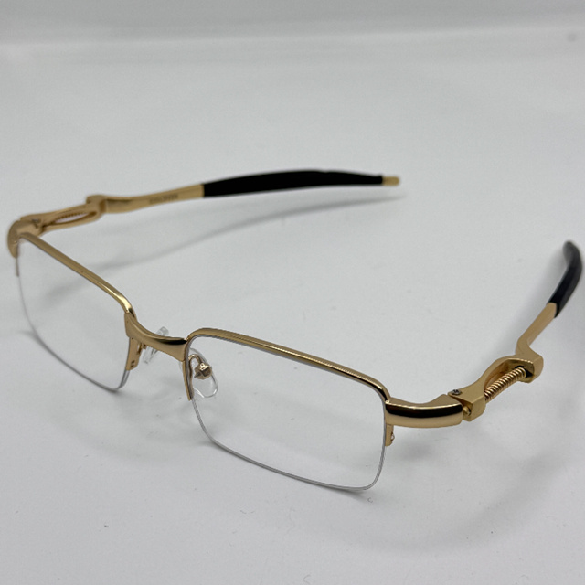 Óculos de descanso em metal leve e resistente, projetado para conforto e praticidade. Suas hastes são equipadas com molas flexíveis que se ajustam perfeitamente ao rosto, garantindo estabilidade durante o uso. Além disso, a armação é versátil, permitindo a adaptação de lentes de grau conforme necessário. Ideal para quem busca elegância, funcionalidade e conforto em um único acessório." Se precisar ajustar algum detalhe ou adicionar mais informações, é só avisar! 😊 Medidas: - Total Frontal: 146 mm - Altura da Lente: 30 mm - Comprimento da Lente: 51 mm - Ponte: 21 mm - Haste: 142 mm