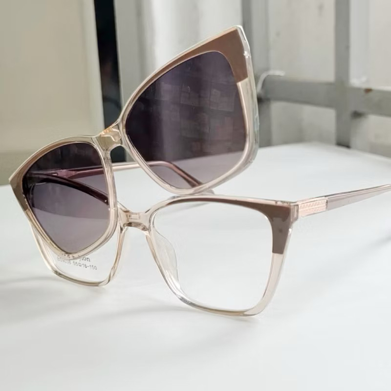 Armação de Óculos Clipon 2 Em 1 Feminino Armação + Solar Modelo Novo Quadrado Surreal de linda Lenta polarizado 9038