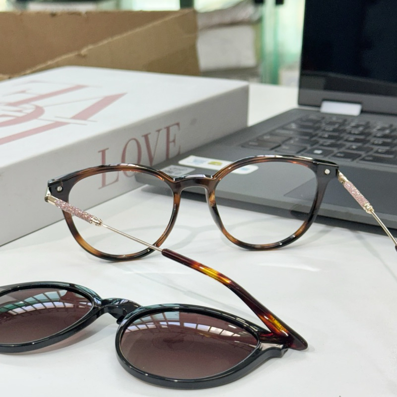 Armação de óculos Clipon 2 Em 1 Feminino Modelo novo com perna de brilho Redondo Moda 0274