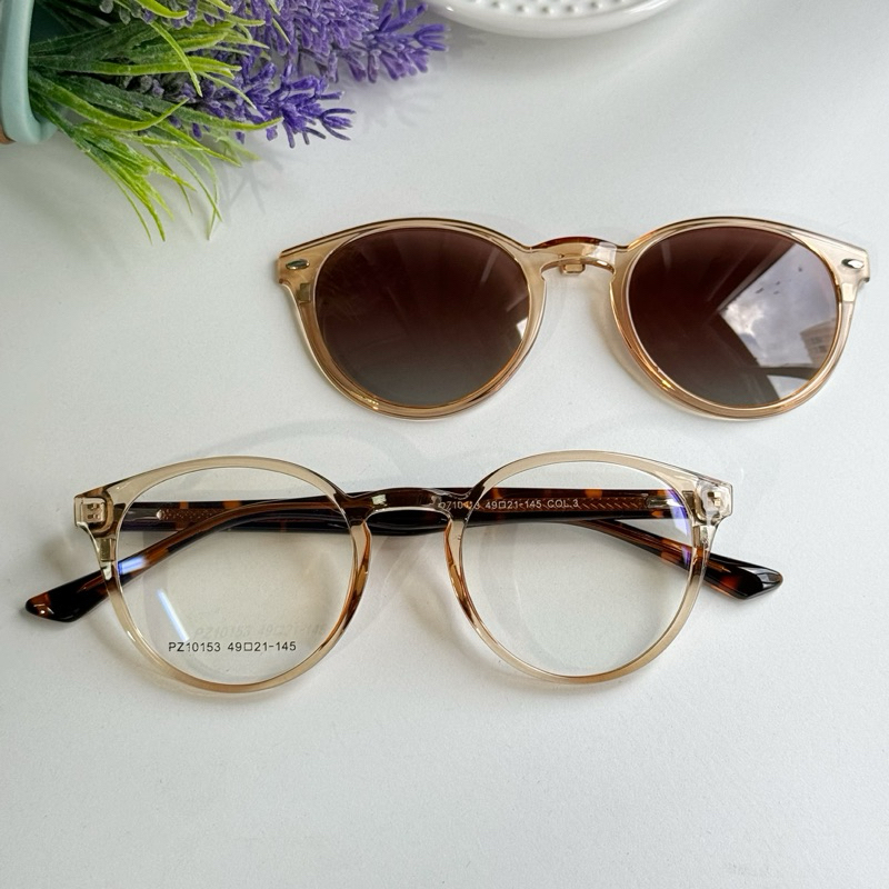 Armação de óculos Clipon 2 em 1 Tudo acetato/ Redondo Unissex/ Tamanho Pequeno/ lente Polarizada 10153