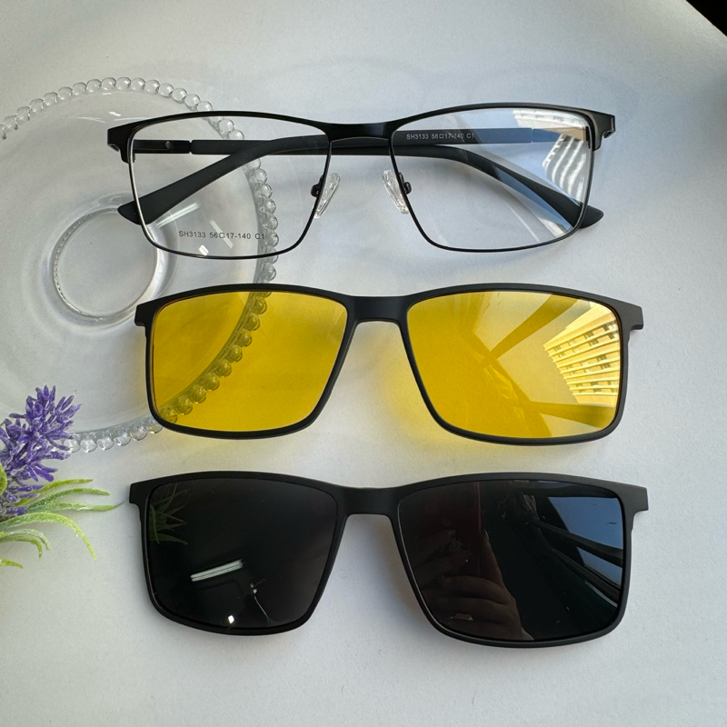 Armação de óculos Clipon 3 EM 1 Masculino 1 Armação + 1 lente preto + 1 lente amarelo/ Tem dois tamanhos 3133