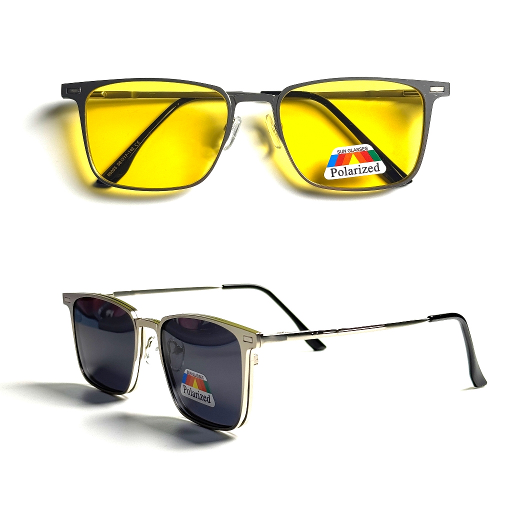 Características Principais: - Óculos receituário Clip On - Modelo 8003s - Material da Armação: Emborrachada - Acompanha 1 lentes solar e 1 lentes de visão noturna Medidas: - Comprimento do Rosto: 145 mm - Altura do Rosto : 43 mm - Altura da Lente: 40.5 mm - Largura da Lente: 58 mm - Ponte: 17 mm - Comprimento do Haste: 143 mm Itens Incluídos: 1 Armação de Grau Metal 1 Lente Amarela De Visão Noturna Polarizada 1 Lente Preto Polarizada