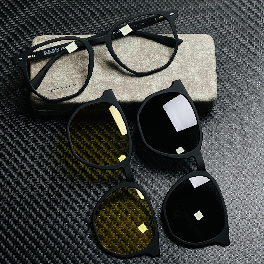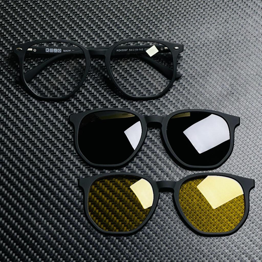 Armações De Óculos Unissex Clipon AQ4306 3 Lentes Polarizadas Com Primavera TR-90 Magnetic Eyewear