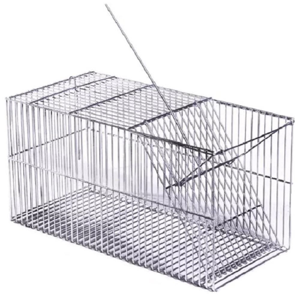 Armadilha Grande Ratoeira com porta Automática para filhotes de gatos e gambás, ratos, ratazanas, camundongos e outros roedores e animais. - - Indicada para capturar ratos, ratazanas, camundongos entre outros animais - - Não escapa nada, pois a malha entre os arames é fina, apenas 7mm - - Não machuca o animal - - Aramado zincado Dimensões/tamanho: Altura: 20 cm Comprimento: 42 cm Largura: 20 cm Malha 7mm Como funciona? Este modelo de armadilha tem o acionamento tipo gatilho A isca fica fixa no gancho para o pet, puxar e desarmar. Neste momento, a porta desce e trava, impedindo a fuga - Detalhe: A trava deve estar na posição certa para poder travar a porta - Muito fácil de manusear. Sistema simples de armar. Com trava, após desarme. O animal não consegue abrir a porta Itens inclusos 01 Ratoeira grande