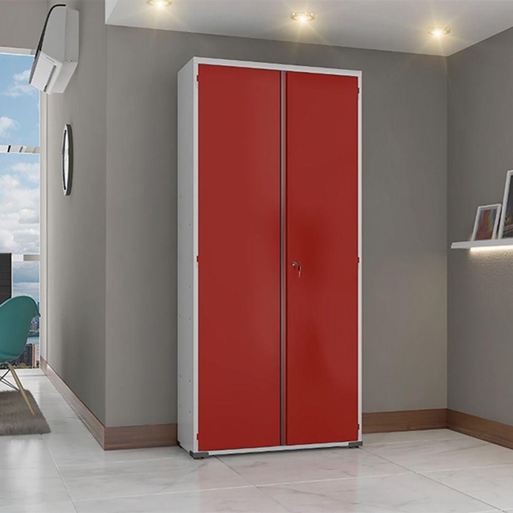 Armário Aço Escritório Fechadura 4 Prateleiras Vermelho