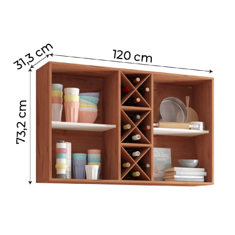 O Armário Aéreo Duplo Com Garrafeiro 1,20m Favorita é a solução. Ele tem duas portas de abrir, duas prateleiras. É o armário ideal para aproveitar os espaços, organizar os utensílios de sua cozinha e deixar o lugar mais bonito e atraente. Aproveite e utilize outros produtos da linha "Favorita" para renovar sua cozinha com design moderno e elegante! DIMENSÕES: A = 73,2 cm/ L = 120 cm/ P = 31,3 cm NOME: Armário Aéreo com Garrafeiro Favorita MARCA: Zanzini COR: PRETO / Natura MATERIAL: MDP 15 mm ACABAMENTO: UV-Verniz/Texturizado UV-Verniz TIPO DE ACABAMENTO: Brilho / Fosco PORTAS: 2 TIPO DE PORTA: Com dobradiças PRATELEIRA: 2 PUXADORES: Plástico DOBRADIÇAS: Metálicas 35 mm GARRAFEIRO: Comporta 12 garrafas INFORMAÇÕES COMPLEMENTARES: Fabricado com painéis de madeira reflorestada e certificada SISTEMA DE MONTAGEM: Parafusos auto atarraxantes, cavilhas, pregos RECOMENDAÇÕES DE LIMPEZA: Limpar com flanela ou pano macio seco, não utilizar produtos abrasivos, desengordurantes, álcool ou qualquer outro produto químico. Não expor o produto diretamente à luz solar e à umidade GARANTIA: 3 meses contra defeito de fabricação PESO: 30kg A Esplanada Móveis se responsabiliza pela entrega dos produtos adquiridos até a porta de entrada ou portaria do endereço indicado, se a portaria do condomínio permitir, as entregas são efetuadas no piso térreo e é de responsabilidade do cliente a locomoção da mercadoria até seu apartamento ou casa. Confira as dimensões do produto e certifique-se de que estão adequadas aos elevadores, portas e corredores do local da entrega. Não fazemos a montagem, desmontagem do produto e/ou portas e janelas, transporte pela escada ou içamento pelo lado de fora do prédio. Não está incluso no serviço de entrega o deslocamento até o interior do apartamento, com ou sem elevador, ou deslocamento em locais de difícil acesso como escadarias. Caso o cliente necessite de entrega dentro das dificuldades mencionadas, deverá entrar em contato para análise e cotação do valor do serviço. Certifique-se de tudo antes de finalizar a compra, evitando assim futuros desagrados ou imprevistos com a entrega.