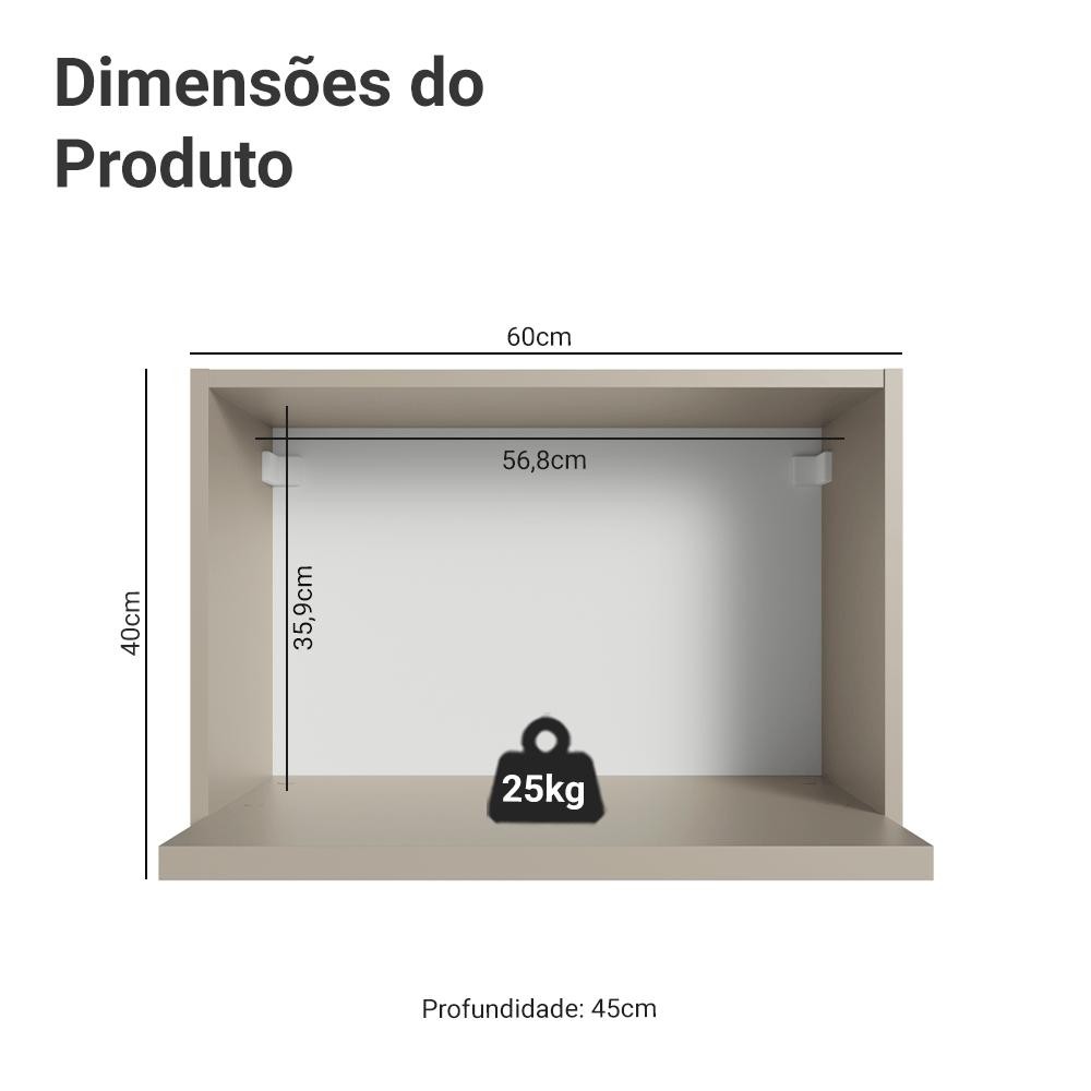 Armário Aéreo 60 cm Nicho para Microondas/Forno Elétrico Crema Nice Madesa