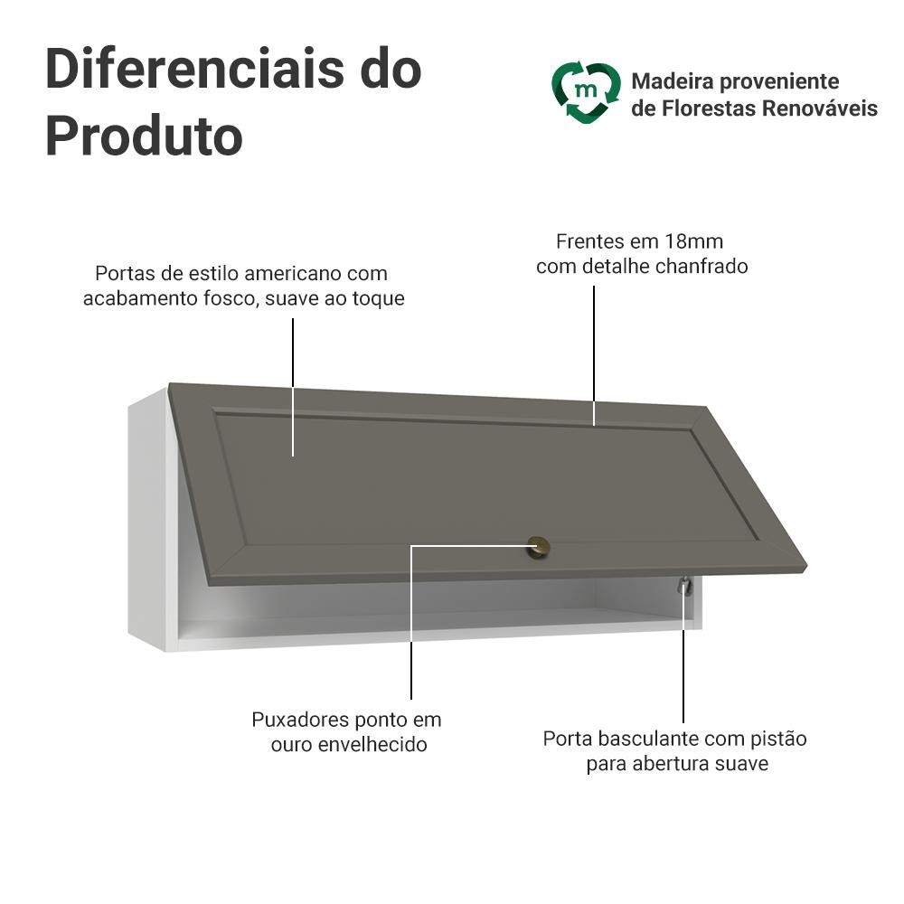 Armário Aéreo 80 cm 1 Porta Basculante Branco/Cinza Vik Madesa