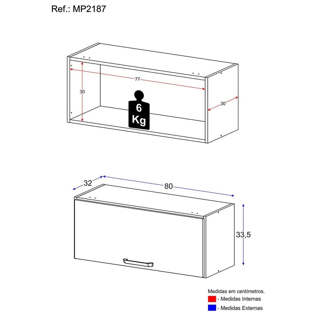 O Armário Aéreo 80cm com 1 Porta Basculante Paris Multimóveis MP2187 é a solução ideal para quem busca funcionalidade e estilo. Produzido em MDP (15mm), material reconhecido pela durabilidade, possui acabamento acetinado (cerca de 20% de brilho) que agrega elegância ao ambiente. Com 1 porta basculante equipada com pistão a gás e puxador em ABS com acabamento cromado, oferece praticidade no dia a dia. Além disso, seu amplo espaço interno proporciona organização para diversos objetos. Com design moderno e funcional, o armário aéreo se destaca como uma opção prática para otimizar o espaço, garantindo qualidade e beleza. Conteúdo da Embalagem: 1 (um) Armário Aéreo 80cm Manual de Montagem Kit Ferragem Dimensões do produto montado: Altura: 33,5cm | Largura: 80cm | Profundidade: 32cm *Você pode consultar as medidas detalhadas na imagem técnica do produto. *As cores do produto podem sofrer variações de tonalidade de acordo com as configurações do seu dispositivo. Imagem meramente ilustrativa. Decoração não acompanha o produto. O produto será entregue desmontado e não disponibilizamos o serviço de montagem.