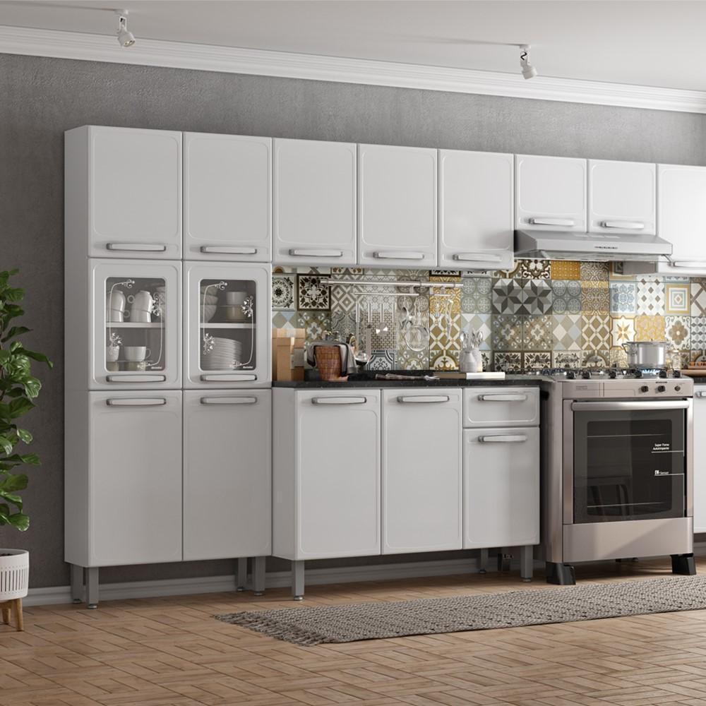 Armário Aéreo Aço Para Cozinha 3 Portas 1 Prateleira Branco