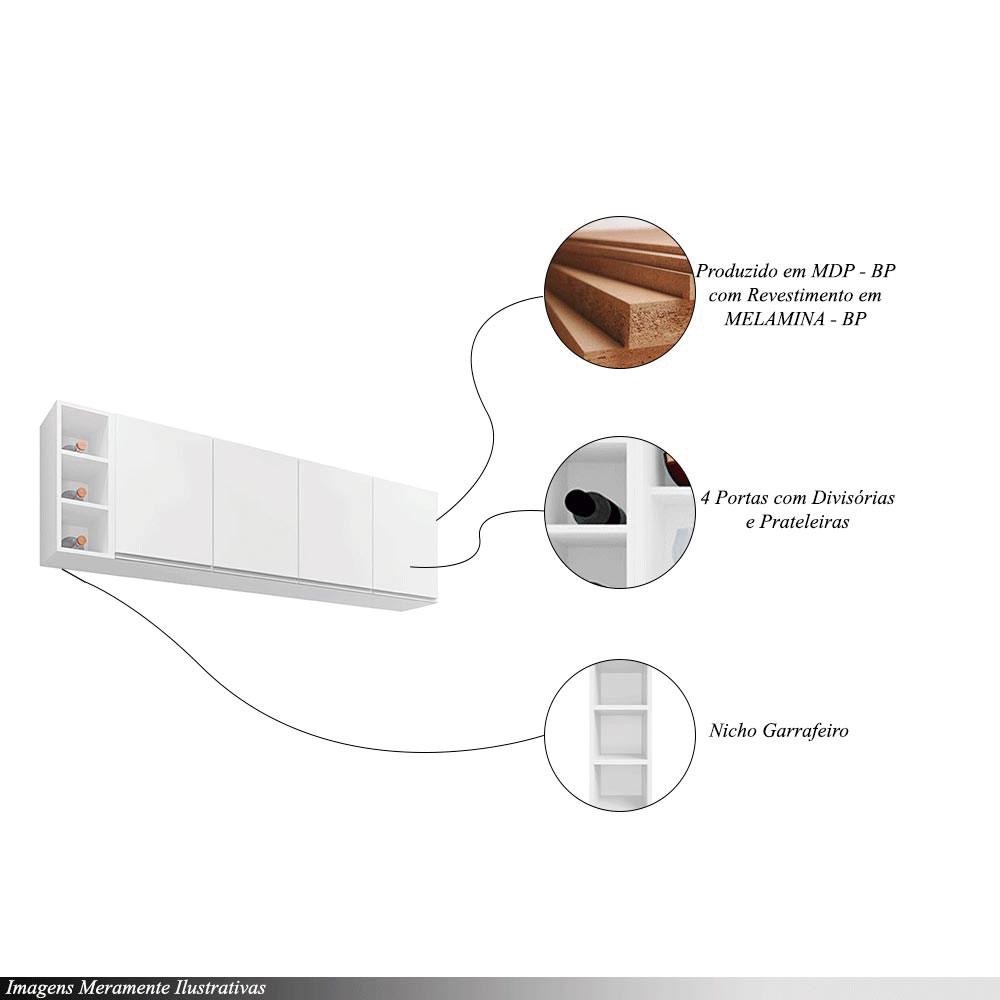 O Aéreo com Nicho Garrafeiro é a escolha perfeita para quem busca funcionalidade, sofisticação e aproveitamento de espaço. Ideal para cozinhas, áreas de lazer ou espaços gourmet, este móvel combina o design moderno com a praticidade necessária para organizar e exibir seus itens de forma elegante. Com um nicho garrafeiro projetado especialmente para armazenar garrafas, este aéreo oferece uma maneira prática e estilosa de manter suas bebidas organizadas e à vista. Seu design inovador permite o armazenamento de garrafas de diferentes tamanhos, ideal para apreciadores de vinhos ou bebidas especiais. Além do nicho garrafeiro, o aéreo conta com prateleiras e compartimentos adicionais para armazenar utensílios de cozinha, acessórios ou objetos decorativos. A estrutura compacta e funcional maximiza o uso do espaço vertical, ajudando a manter seu ambiente organizado e livre de desordem. Fabricado com materiais de alta qualidade. Dimensões do Produto Aéreo: Largura: 160cm Altura: 54cm Profundidade: 29cm Dimensões do Nicho: Largura: 20cm Altura: 54cm Profundidade: 26,7cm Característica do Produto: Material da Estrutura: MDP-BP Acabamento: Melamina-BP Peso Máximo Suportado:40Kg Quantidade de Prateleiras: 1, contém divisórias Quantidade de Portas: 4 Portas Observação: Imagem meramente ilustrativa. A decoração não acompanha o produto. Necessita de Montagem: Sim, aconselhamos que a montagem seja feita por um profissional Instruções/Cuidado: Utilizar apenas pano macio umedecido e sabão neutro. Não utilizar produtos abrasivos Observações importantes: - As imagens são meramente ilustrativas e não acompanham objetos de decoração e eletros - Pode haver alguma diferença de tonalidade entre a imagem e o produto, por conta do tratamento de imagens e a calibração de cores da sua tela. - Todos os nossos produtos são enviados devidamente embalados e com total segurança - Ao receber o produto o cliente deve verificar as condições da embalagem, havendo alguma avaria não assine o comprovante de recebimento, entre em contato com a loja para orientações - A nossa loja se responsabilizará pela entrega dos produtos adquiridos até a porta de entrada ou portaria do endereço indicado. - Não nos responsabilizamos, no ato da entrega, por montagens, desmontagens e instalações de produtos, bem como, por subir ou descer escadas/elevadores ou pela utilização de guinchos ou equipamentos similares para acesso a pisos superiores em apartamentos, casas ou escritórios. Estas despesas adicionais serão de responsabilidade do cliente. - Confira as dimensões do produto no momento da compra e certifique-se de que passará normalmente por elevadores, portas, escadas e/ou corredores, evitando assim futuros desagrados ou imprevistos com a entrega do produto.