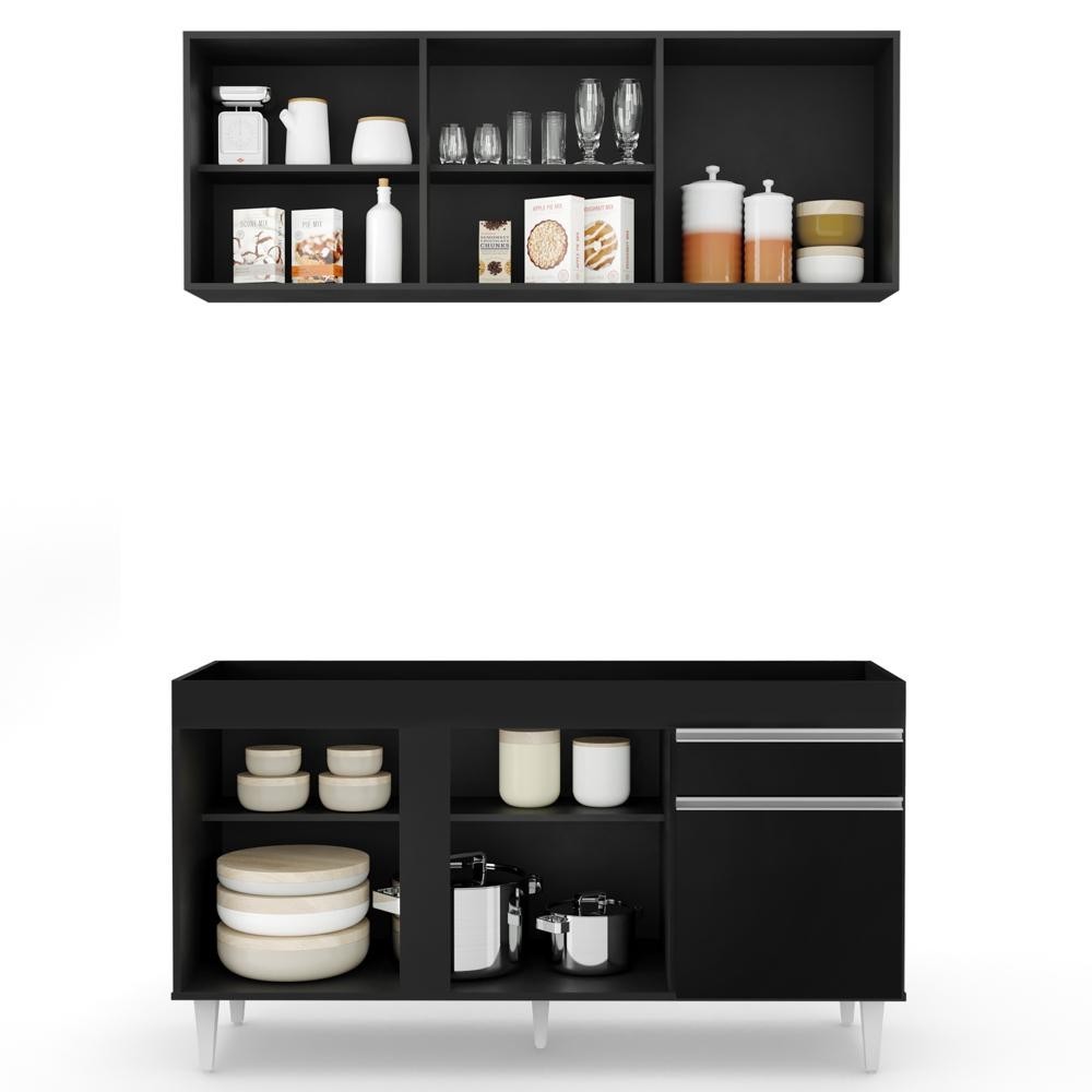 Armário Aéreo Argélia e Balcão Para Pia 150cm Dakota Preto - Lumil Móveis