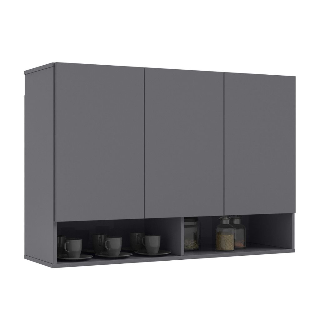 Armário Aéreo Cinza 3 Portas Multiuso P/ Cozinha, Quarto e Despensa