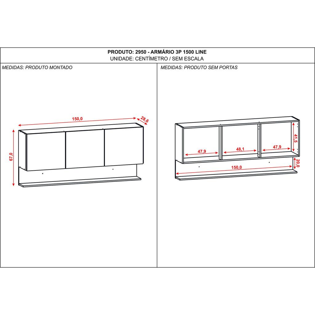 Armário Aéreo Cozinha 3 Portas 150 cm Line Kits Paraná