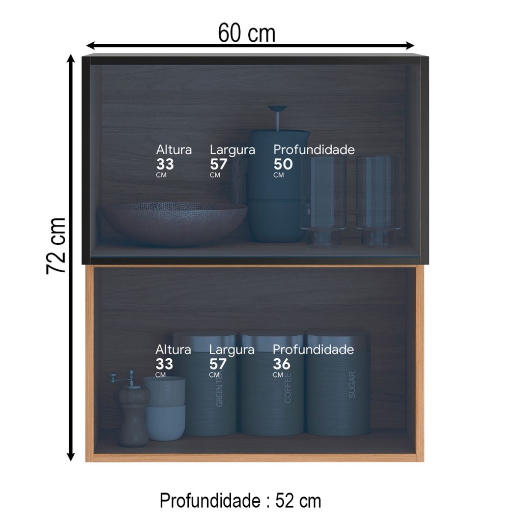 Dimensões: - Altura: 72,00 cm - Largura: 60,00 cm - Profundidade: 52,00 cm - Peso: 22,300 kg Descrição: O(a) Armário Aéreo Cozinha 60 Cm Proença 2 Portas 100% Mdf com Vidro Nogueira/Nude - Demóbile é produzido em 100% MDF na escala de brilho Fosca com Textura, e possui um grau de dificuldade de montagem: Difícil. Seu revestimento/acabamento é: Pintura UV. Infelizmente a Loja não oferece serviço de montagem, deixamos essa informação bem clara em todas as nossas páginas de produto. Onde especificamos que os móveis chegarão desmontados, e que a montagem fica por conta do cliente. Como não oferecemos esse serviço não embutimos o mesmo no preço dos produtos, ou seja, maior economia para você! Todos os nossos móveis também acompanham o manual de montagem, e caso você queira, pode realizar a montagem você mesmo, sempre especificamos os graus de montagem dos produtos. Nos casos de grau baixo e médio, com pouco ou nenhum conhecimento, você mesmo pode efetuar a montagem, e fazer essa economia. Apenas nos graus de montagem alto, recomendamos a contratação de um montador com experiência, visto que são montagens mais complicadas. A montagem é feita com Parafusos e cavilhas.. Este móvel é indicado para que seja utilizado no(a) Cozinha, dando um toque especial no cômodo de sua casa. Para que você mantenha seu produto sempre em ótimo estado, recomendamos que use apenas um pano seco ou levemente umedecido, sem o uso de quaisquer produtos abrasivos. A Loja garante aos clientes, 90 dias de garantia nos produtos, porém, recomendamos que entre em contato com o fornecedor/marca do produto, pois o mesmo(a), pode garantir um prazo maior de garantia. Lembrando ainda que: quaisquer objetos decorativos que aparecem nas imagens, não acompanham o produto. Características: - Espessura da Estrutura: 15mm - Possui Gavetas?: Não - Possui Portas?: Sim - Quantidade de Portas: 2 - Material da Porta: MDF e Vidro - Espessura da Porta: 15 mm - Tipo de Porta: Portas Basculantes - Material das Dobradiças: Caneco Com Amortecimento e Pistão a Gás - Possui Vidro?: Sim - Vidro Temperado?: Não - Possui Espelho?: Não - Possui Prateleiras?: Não - Possui Puxadores?: Sim - Material do Puxador: Metal - Possui Ripamento?: Não - Linha ou Coleção: Proença - Montagem Invertida?: Não Pode ser Montado Invertido - Cor interna: Marrom - É frágil?: Não - Possui Nicho?: Não - Material da Estrutura: 100% MDF - Escala de Brilho: Fosca com Textura - Possui Rodízios?: Não - Possui Pés?: Não - Cozinha Suspensa: Sim - Tipo de Móveis de Cozinha: Armário - Possui Vidro: Sim - Tamanho Unico Grande Pequeno: Único - Acompanha: Armário Aéreo Cozinha, Kit Ferragens e Manual de Montagem - Acompanha Manual de Montagem: Sim - Como os Móveis Chegarão na Minha Casa: O produto será entregue desmontado, acompanhado de manual de montagem e acessórios. Caixa revestida por plástico termoencohível e peças separadas por isomanta. - Grau de Dificuldade da Montagem: Difícil - Necessita de Montagem: Sim - Sistema de Montagem: Parafusos e cavilhas. - Garantia (dias): 90 - Indicação de Uso: Cozinha - Observação: As cores do produto podem sofrer variações de tonalidade de acordo com as configurações do seu dispositivo. Imagens meramente ilustrativas. Itens para decorar o produto e o ambiente não acompanham o produto. - Recomendação de Manutenção: Utilizar pano levemente umedecido, seguido de pano seco. Não utilizar quaisquer produtos abrasivos. - Revestimento /Acabamento: Pintura UV