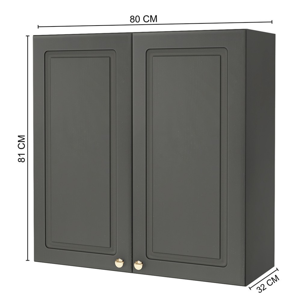 Armário Aéreo Cozinha 80 Cm 2 Portas 2 Prateleiras Chumbo 6171.12 - Indékes