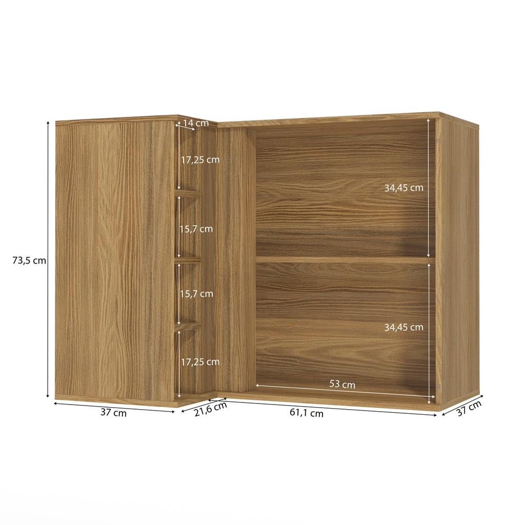 Armário Aéreo de Canto Reto Celeste Kappesberg 100% MDF 1 Porta 4 Nichos Nogueira/Azul 98cm