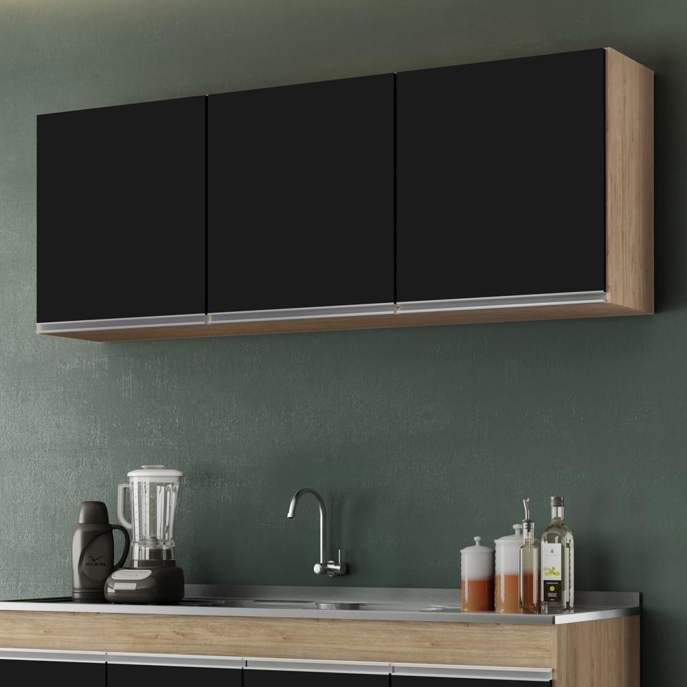 Armário Aéreo de Cozinha 150cm 3 Portas Argélia Castanho/Preto - Lumil Móveis