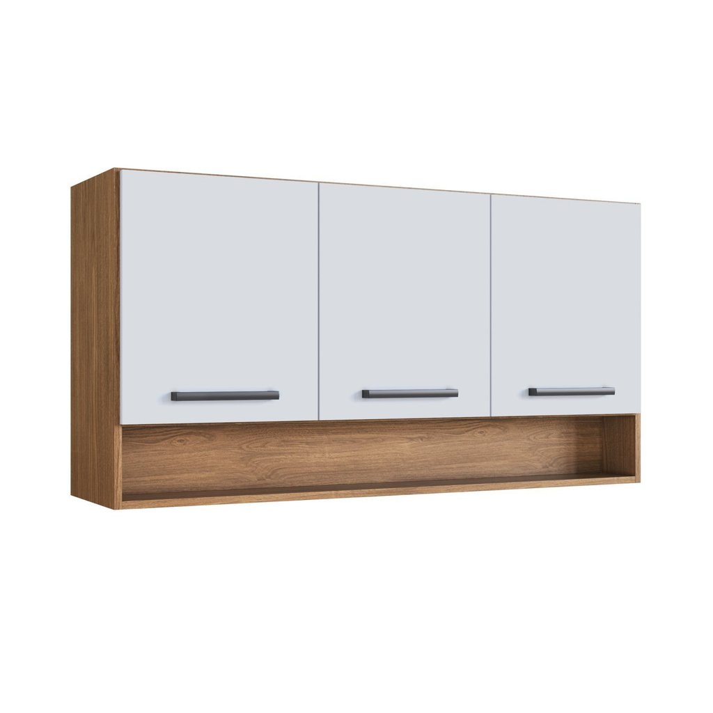 Armário Aéreo de Cozinha 3 Portas e Nicho Giovanna Freijó/Branco