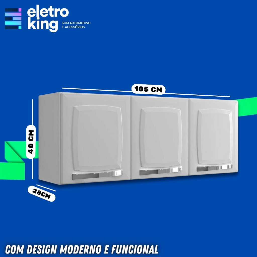 Seja bem-vindo a Eletroking, leia atentamente a descrição do produto abaixo antes da compra, qualquer dúvida, nos acione no campo de perguntas do anúncio. Armario Aereo de Cozinha Itatiaia 3 Portas Rose - Branco Deixe sua cozinha ainda mais organizada e charmosa com o Armário Aéreo Itatiaia Rose. Com 3 portas de bater e prateleiras internas em aço, ele oferece praticidade e espaço para guardar utensílios, mantimentos e louças do dia a dia. Seu design moderno na cor branca harmoniza facilmente com diversos estilos de cozinha, enquanto os puxadores e dobradiças em aço garantem durabilidade e resistência para o uso diário. Especificações Técnicas: • Modelo: Rose • Tipo: Armário Aéreo • Número de Portas: 3 • Tipo de Porta: Bater • Material: Portas em Aço • Puxadores: 3 Puxadores • Tipo de Prateleira: Em Aço • Dobradiças: Em Aço • Cor: Branco Conteúdo da Embalagem: • Armário Rose desmontado • Parafusos • Manual de montagem Importante: • Garantia de 180 dias. • Valor Unitário. • Todos os Nossos Produtos São Novos, Originais e Acompanham Nota Fiscal. • A Eletroking recomenda que a instalação seja feita por profissional especializado e não se responsabiliza pelo mau uso do produto.