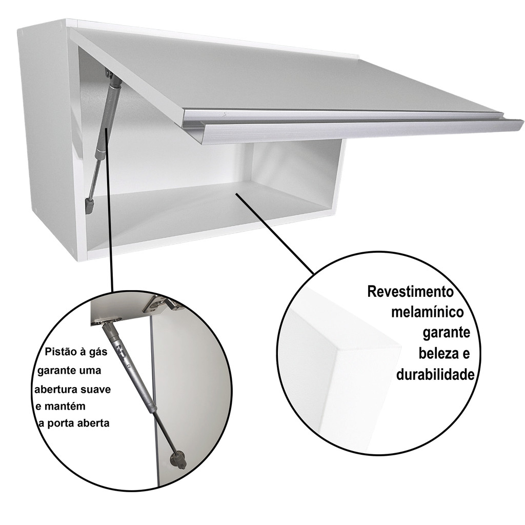 Armário aéreo de parede multiuso basculante 70cm 100% MDF Branco para cozinha lavanderia montado