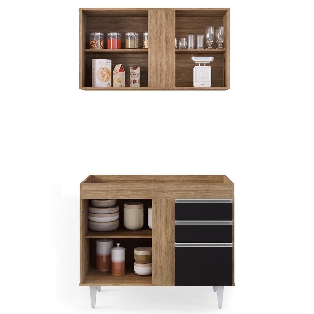 Armário Aéreo Indiana e Balcão Para Pia 100cm Luziania Castanho/Preto - Lumil Móveis