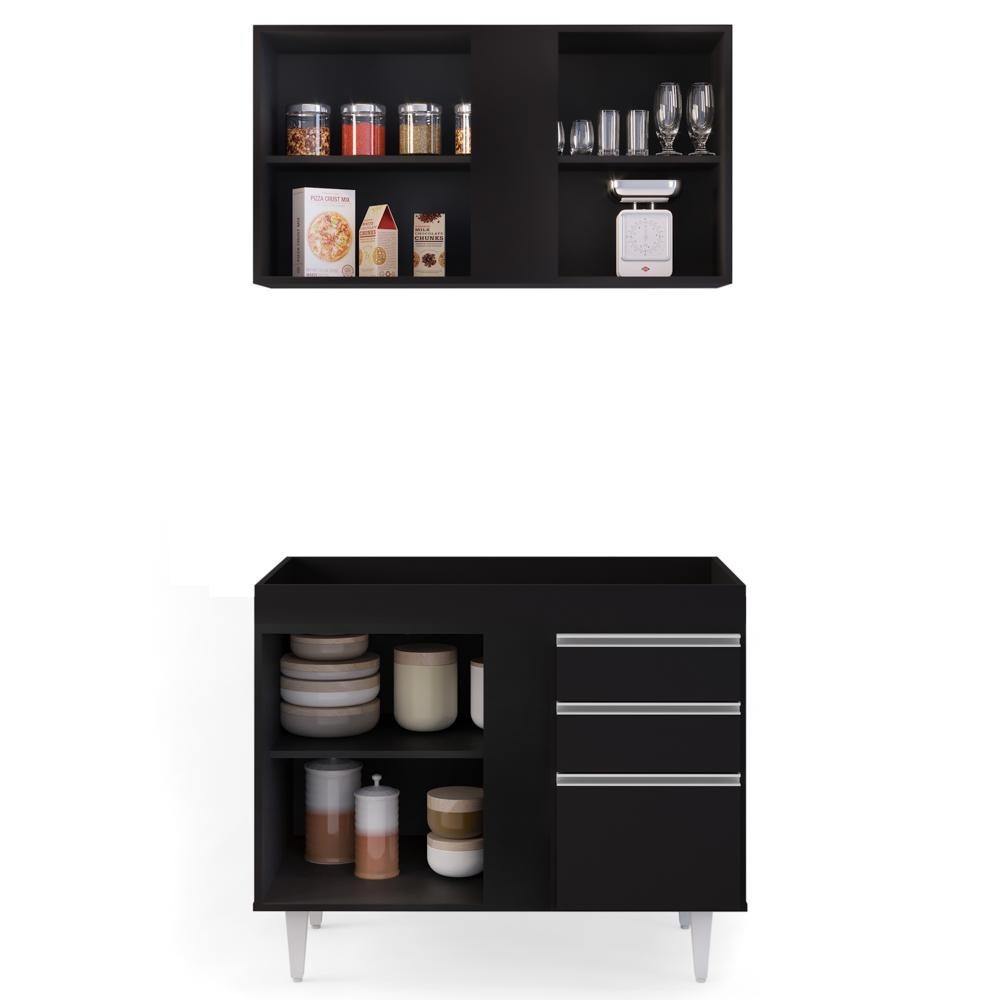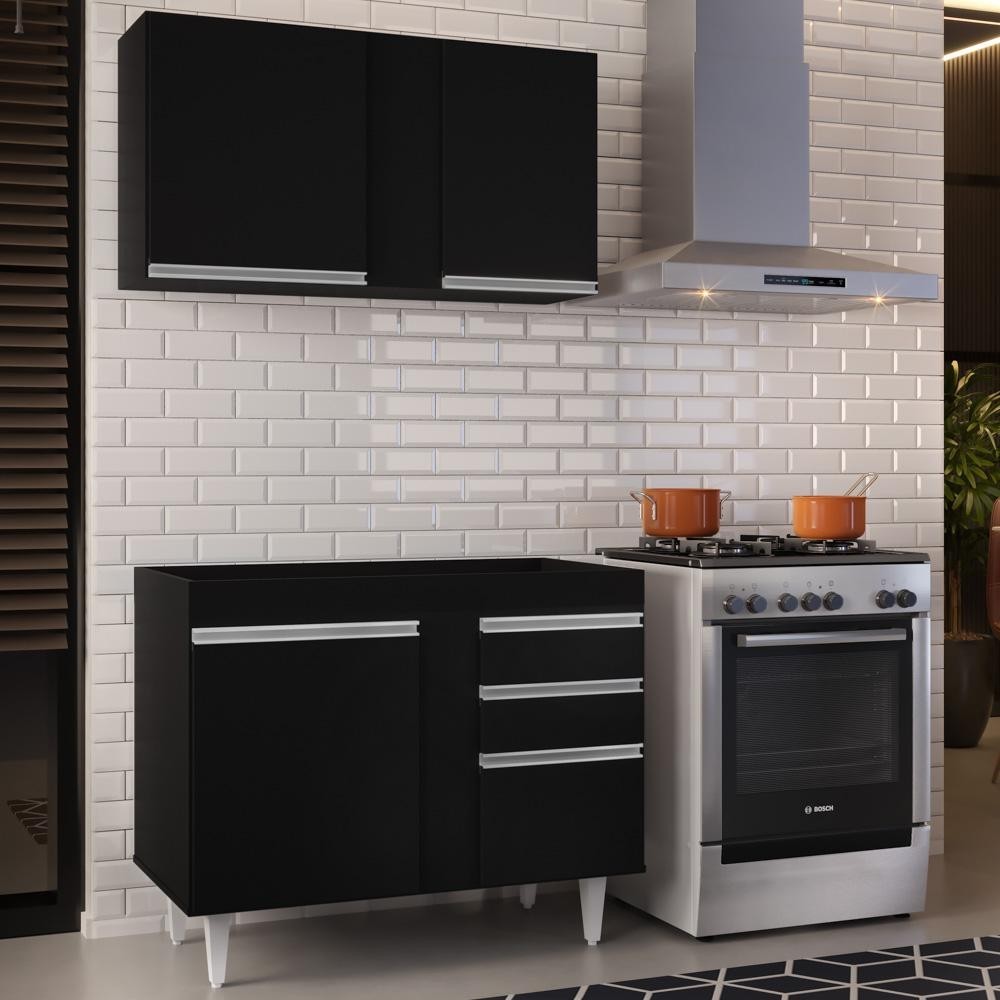 Armário Aéreo Indiana e Balcão Para Pia 100cm Luziania Preto - Lumil Móveis