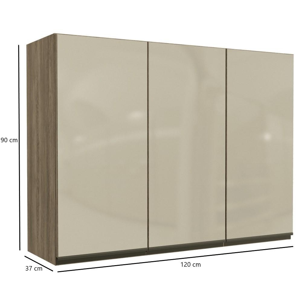 Armário Aéreo Kappesberg Maxxi 3 Portas com Vidro Marrom