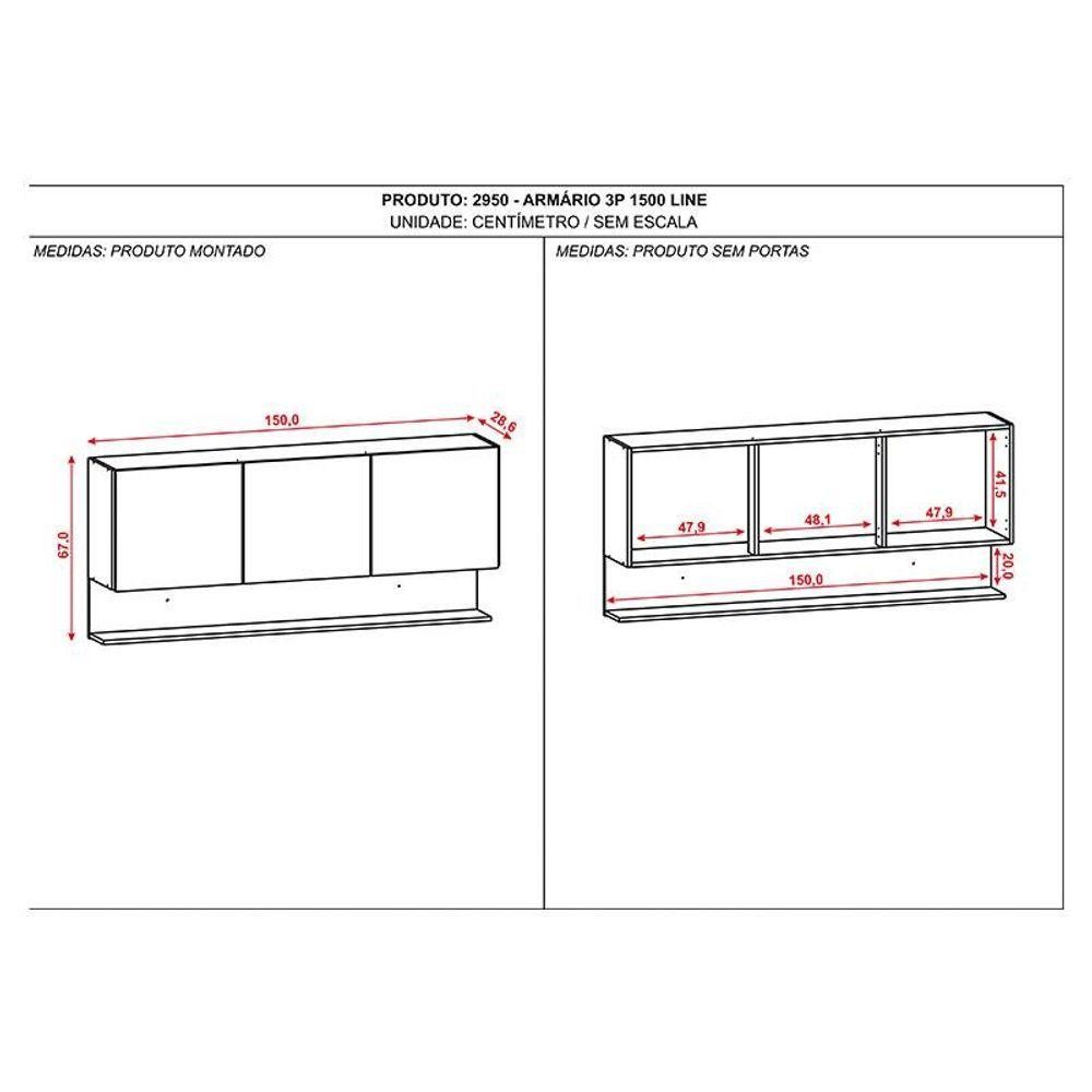 Armário Aéreo Line 3 Portas 150 Cm Gris Freijó - Kits Paraná