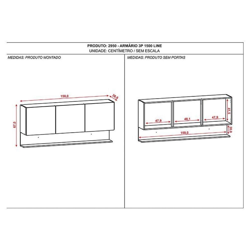 Armário Aéreo Line 3 Portas 150 Cm Supremo Freijó - Kits Paraná