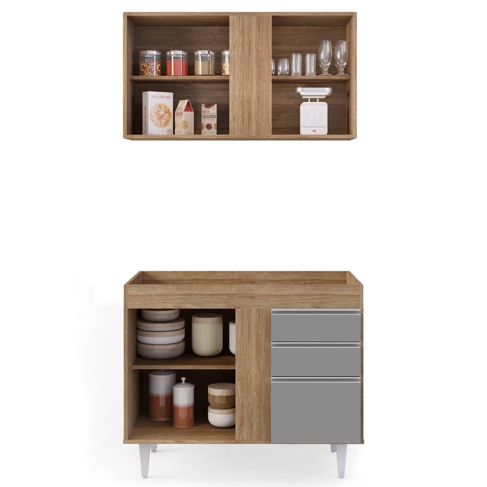 Armário Aéreo Luziania e Balcão Para Pia 100cm Indiana Castanho/Cinza - Lumil Móveis