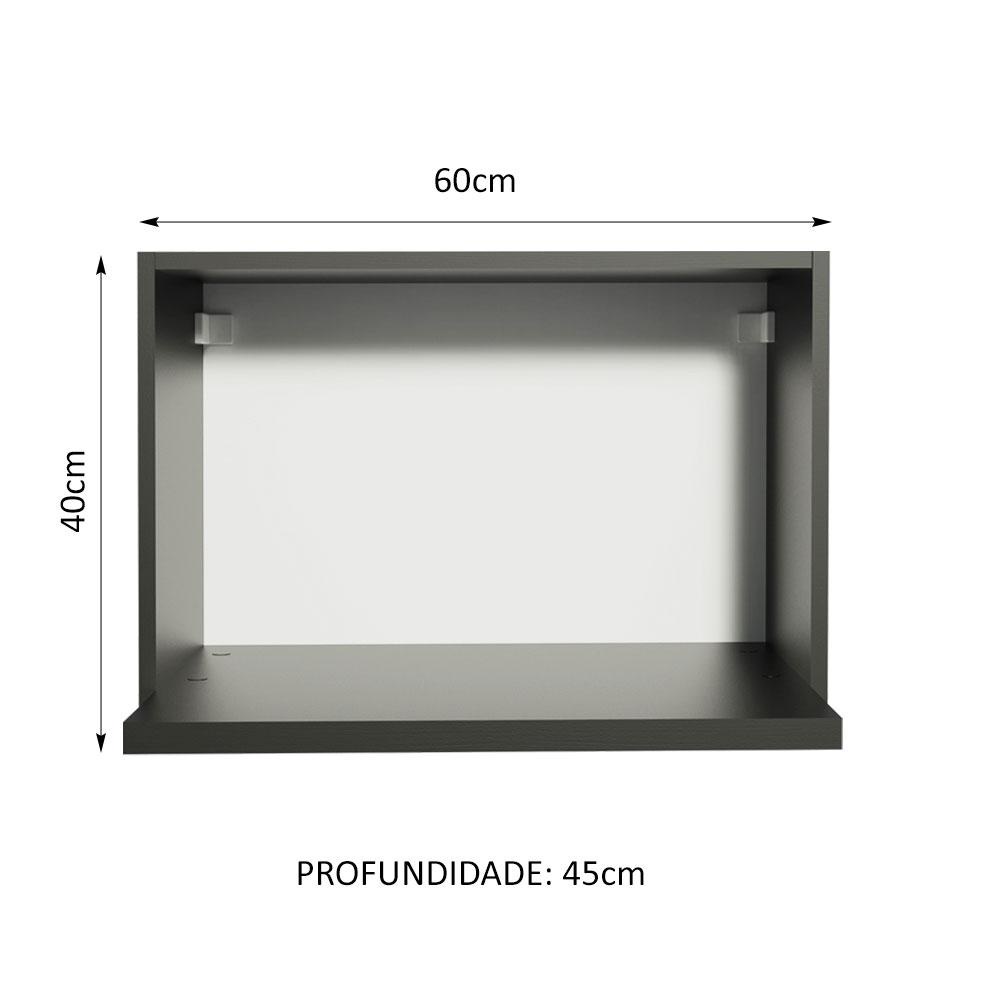 Armário Aéreo Madesa para Reims, Lux, Glamy 60 cm com Nicho para Microondas e Forno Elétrico - Preto