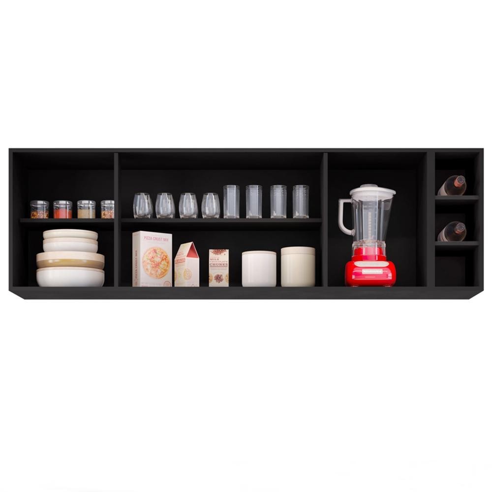 Armário Aéreo Nevada com Nicho 180cm 4 Portas Preto - Lumil