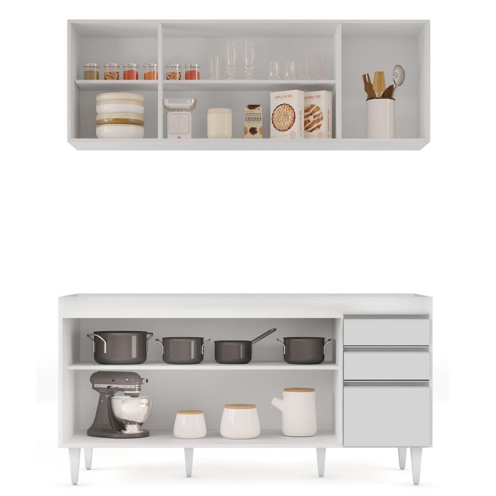 Armário Aéreo Nevada e Balcão Para Pia 160cm Arkansas Branco - Lumil