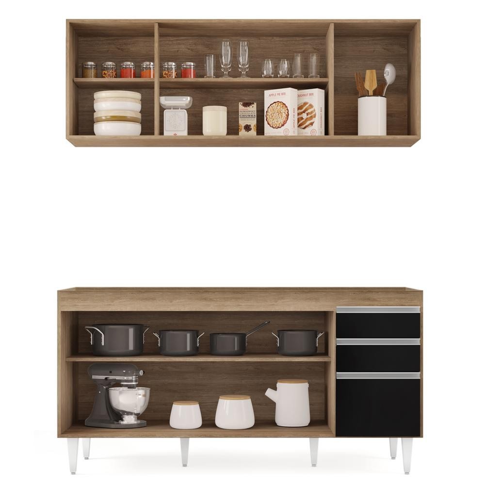 Armário Aéreo Nevada e Balcão Para Pia 160cm Arkansas Castanho/Preto - Lumil Móveis