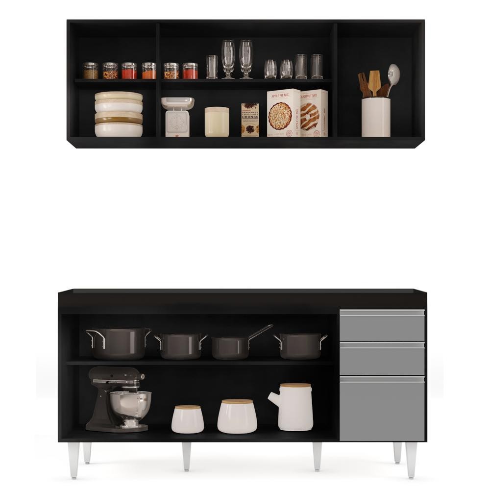 Armário Aéreo Nevada e Balcão Para Pia 160cm Arkansas Preto/Cinza - Lumil Móveis