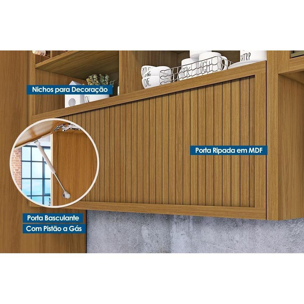 Armário Aéreo p/ Cozinha Baronesa 1 Porta Basculante c/ Adega e Nicho Ripado 120cm Freijó - Nesher