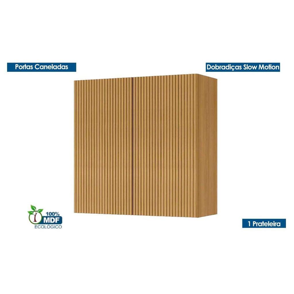Armário Aéreo p/ Cozinha Rainha c/ 2 Portas Ripadas 80 cm Nature - Nesher