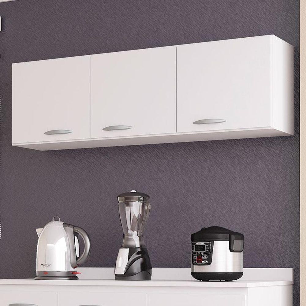Armário Aéreo Para Cozinha 3 Portas 120 Cm Branco Brilho - Poquema