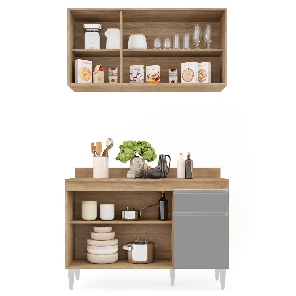 Armário Aéreo Virgínia e Balcão com Tampo 120cm Arizona Castanho/Cinza - Lumil