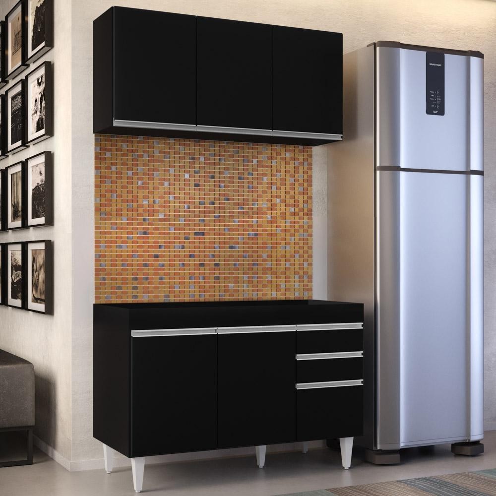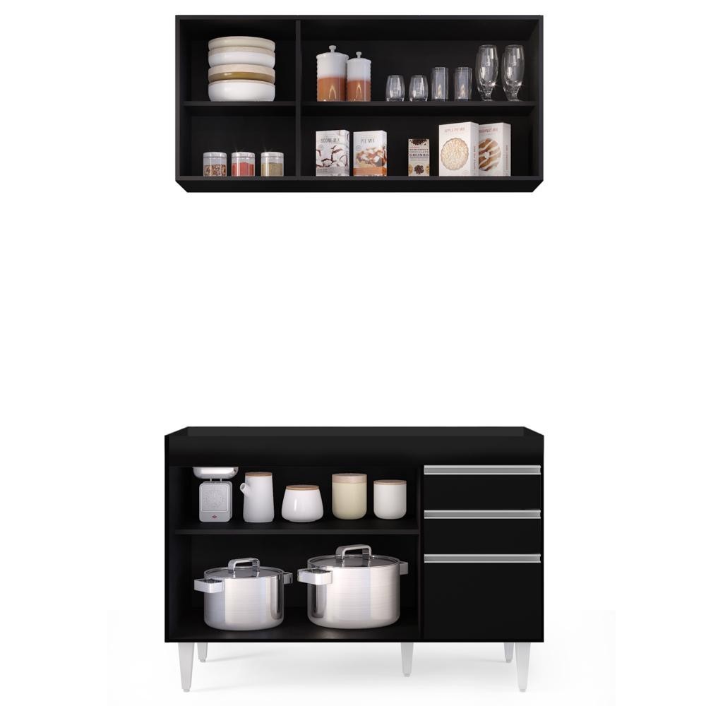 Armário Aéreo Virgínia e Balcão Para Pia 120cm Michigan Preto - Lumil Móveis